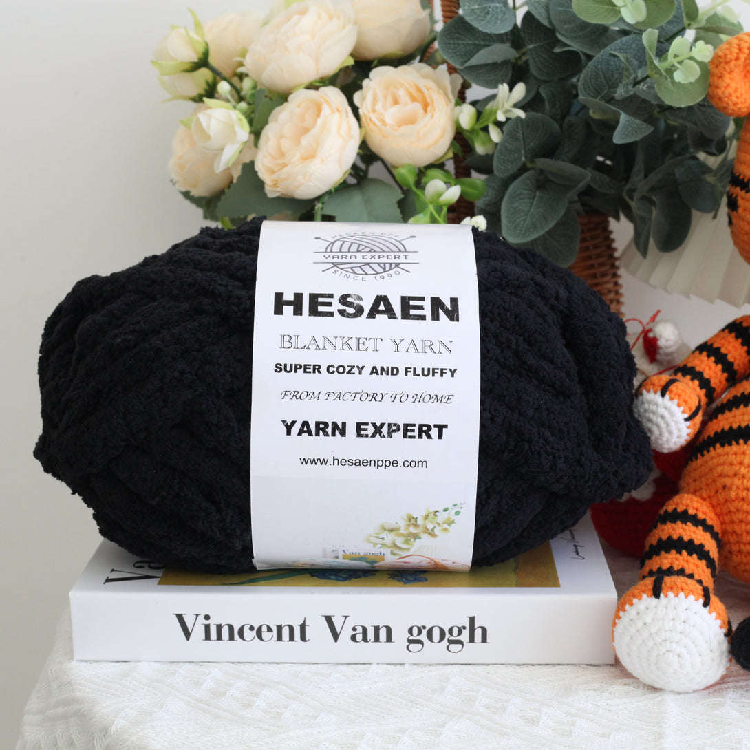 HESAEN CHUNKY BLANKET YARN SUPER THICK COZY AND SOFT (226G/25M), 06 BLACK