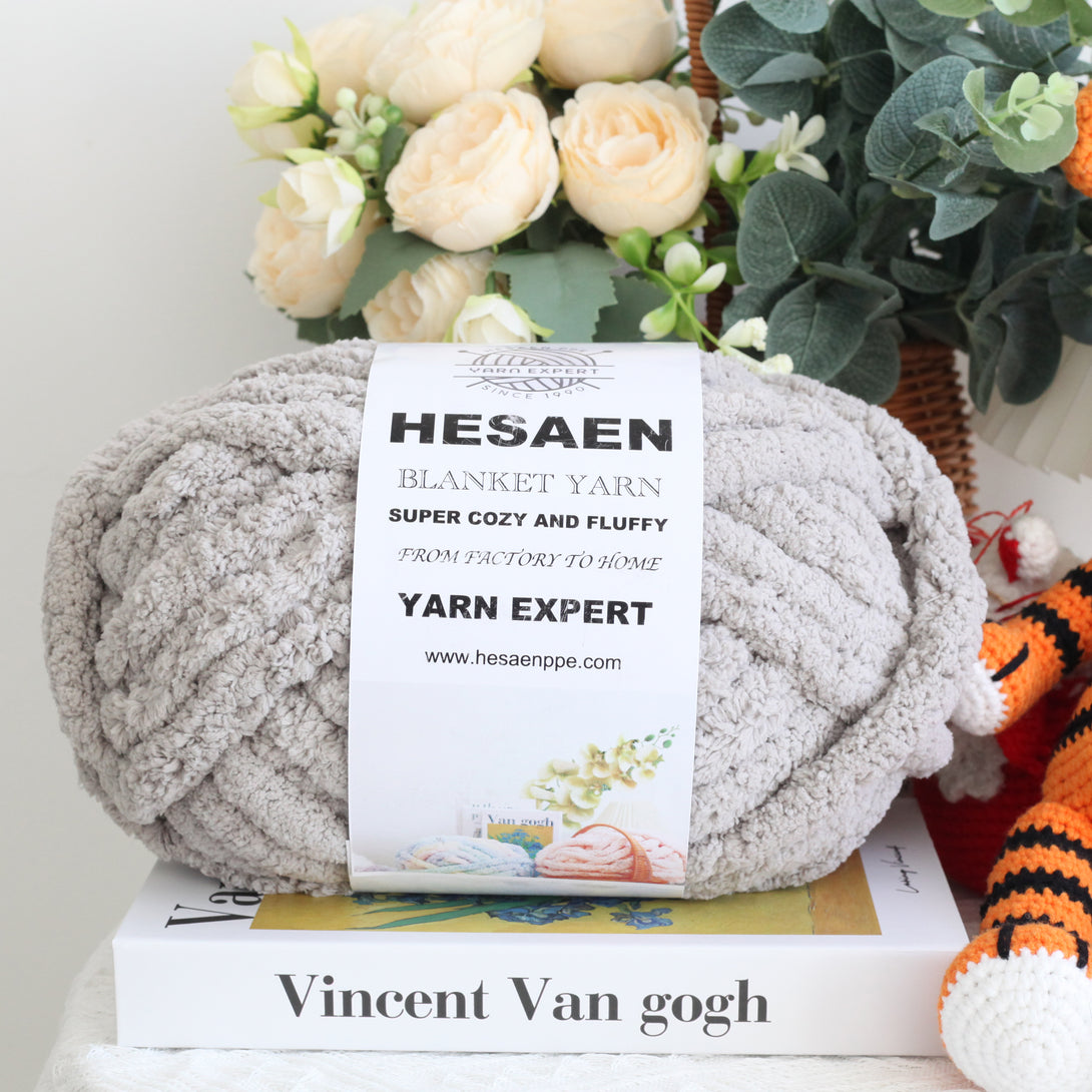 HESAEN CHUNKY BLANKET YARN SUPER THICK COZY AND SOFT (226G/25M), 09 LIGHT GRAY