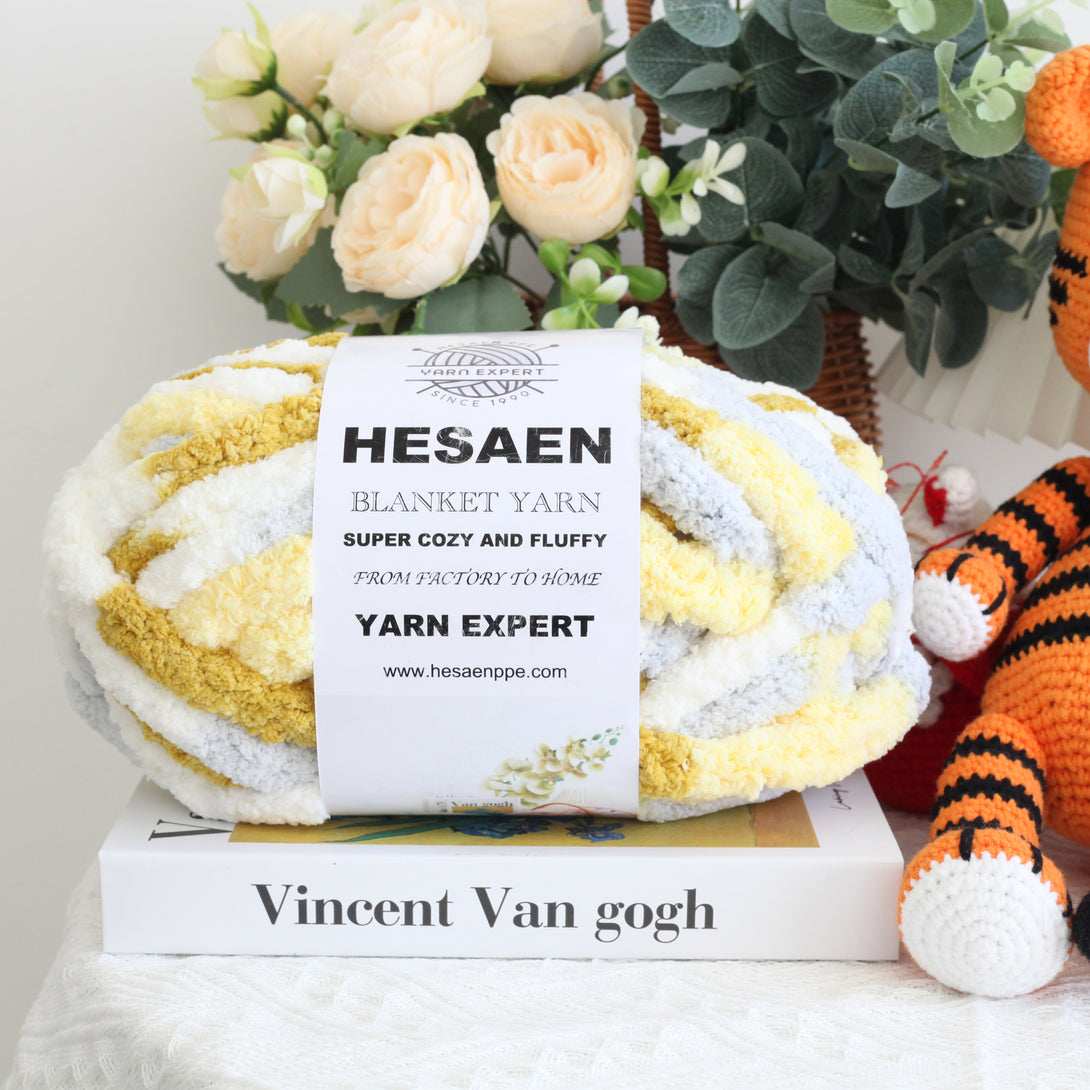 HESAEN CHUNKY BLANKET YARN SUPER THICK COZY AND SOFT (226G/25M), 22 GINGER