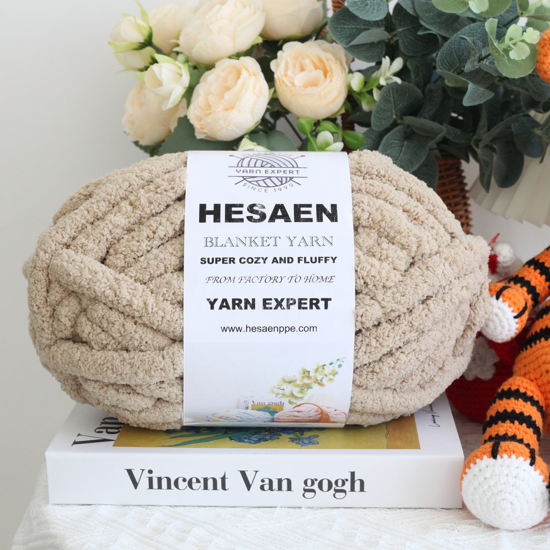 HESAEN CHUNKY BLANKET YARN SUPER THICK COZY AND SOFT (226G/25M), 26 LIGHT KHAKI